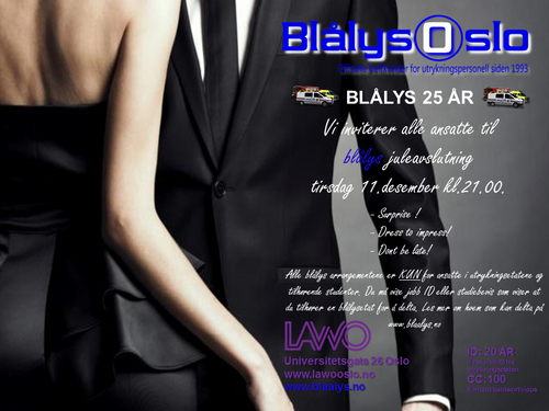 Velkommen til årets JULEAVSLUTNING PÅ BLÅLYS OSLO TIRSDAG 11 DESEMBER 2018.