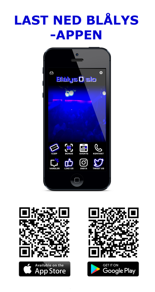 Før alle blålys arrangementer legges det ut ett begrenset antall billetter. Hold telefon kamera mot QR koden på bildet og last ned BLÅLYS app.