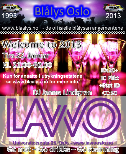 Blålys er til for at vi skal samle gode kolleger og møtes på tvers av etatene. Det er her man kan knytte kontakter på tvers av etatene i sosialt lag. Bestill gjerne bord på forhånd og spis en bedre middag eller få noe godt drikke i glassene. Lokalene er egnet for samtaler og har egen avdeling med nattklubb og DJ. Alle fra blålys får 20% rabatt på maten på Lawo.