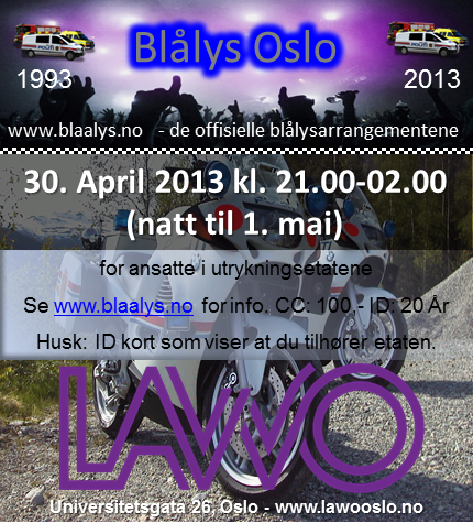 Lawo Oslo i Universitetsgata setter av hele lokalet til Blålys denne kvelden - her blir det garantert liv. Velkommen til alle gode kolleger.