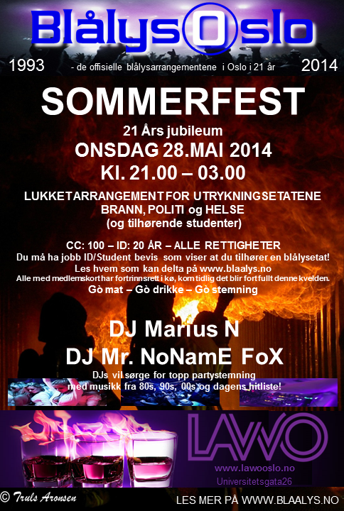 VELKOMMEN TIL SOMMERFEST OG 21 ÅRS JUBILEUM FOR BLÅLYS OSLO!
